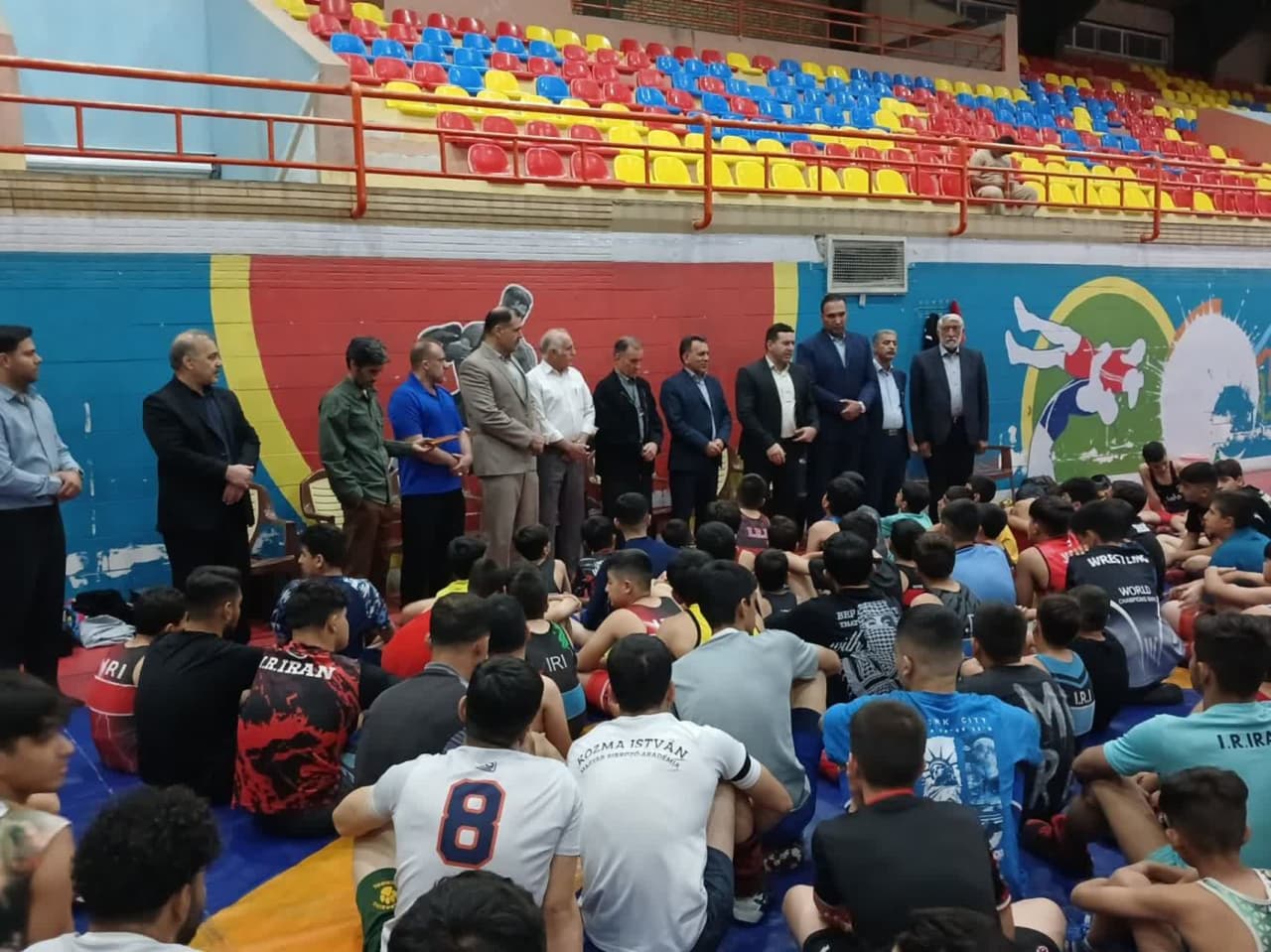 بنا به برگزاری مسابقات استانی نونهالان هئیت کشتی شهرستان خرم آباد برگزار میکند